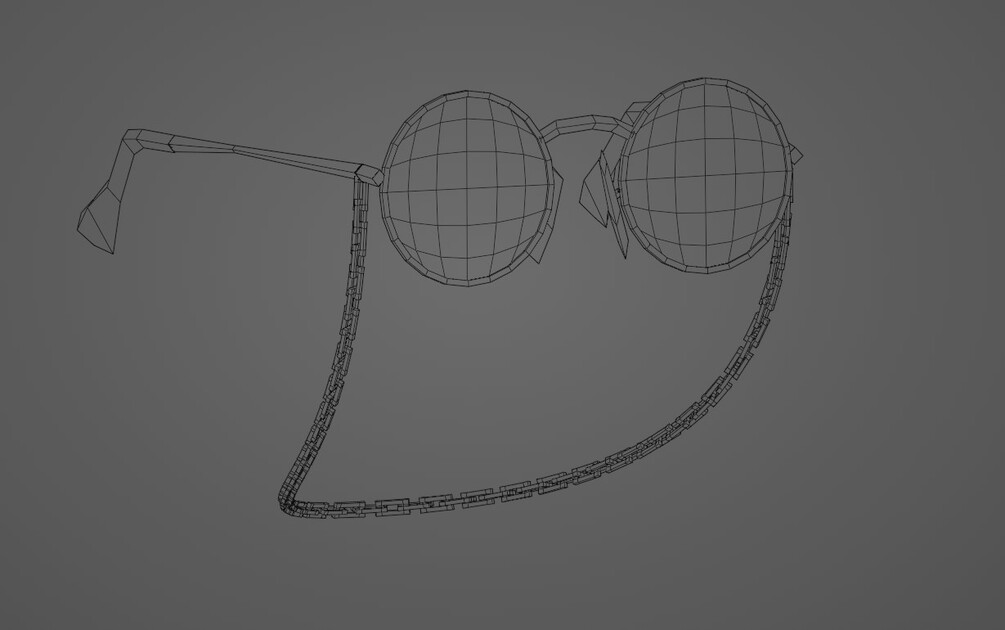 Some chained round glasses made by me from scratch in blender. Rigged to a neck and head bone.