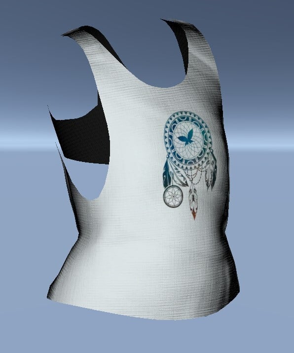 A tank top and bra made by me from scratch in blender. Rigged and Weight painted to Zinpia's Zeedah base.